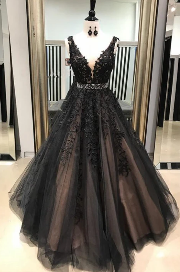 Black A Line Prom Dress with Lace, Sweet 16 Dresses, Evening Dress, Dance Dress, Graduation School Party Gown