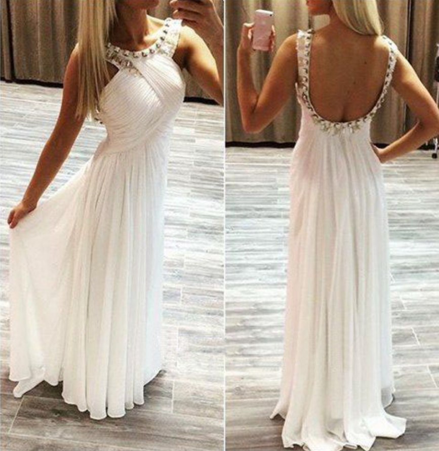 White Bridesmaid Dresses, Open Back Prom Dress,Sexy Backless Evening Party Dress,Beaded Occasion Dress,Sexy Graduation Dress