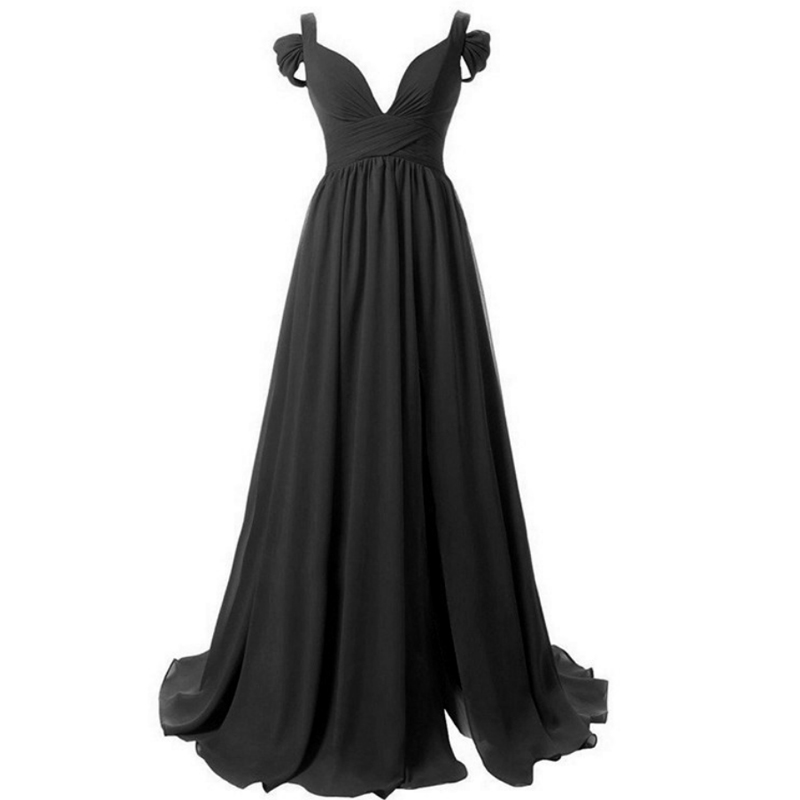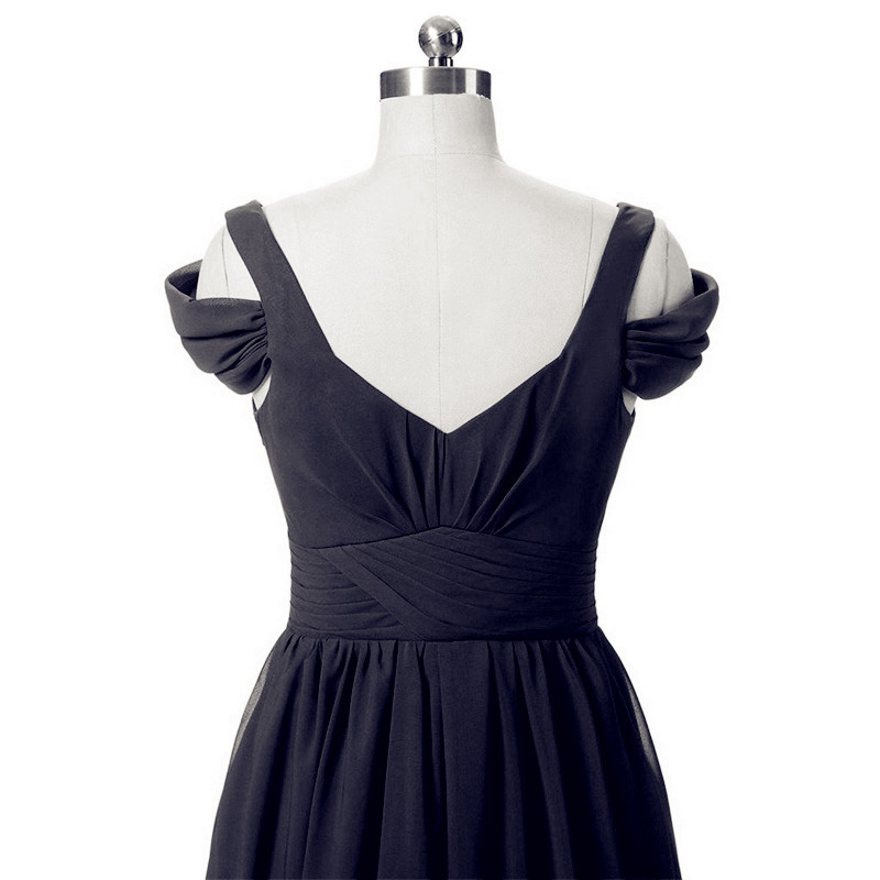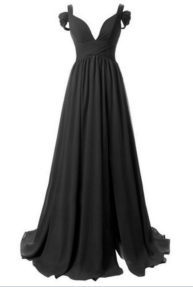 Black Bridesmaid Dresses, Black Chiffon Off Shoulder and Slit Long Gowns, Black Formal Dresses, Evening Dresses