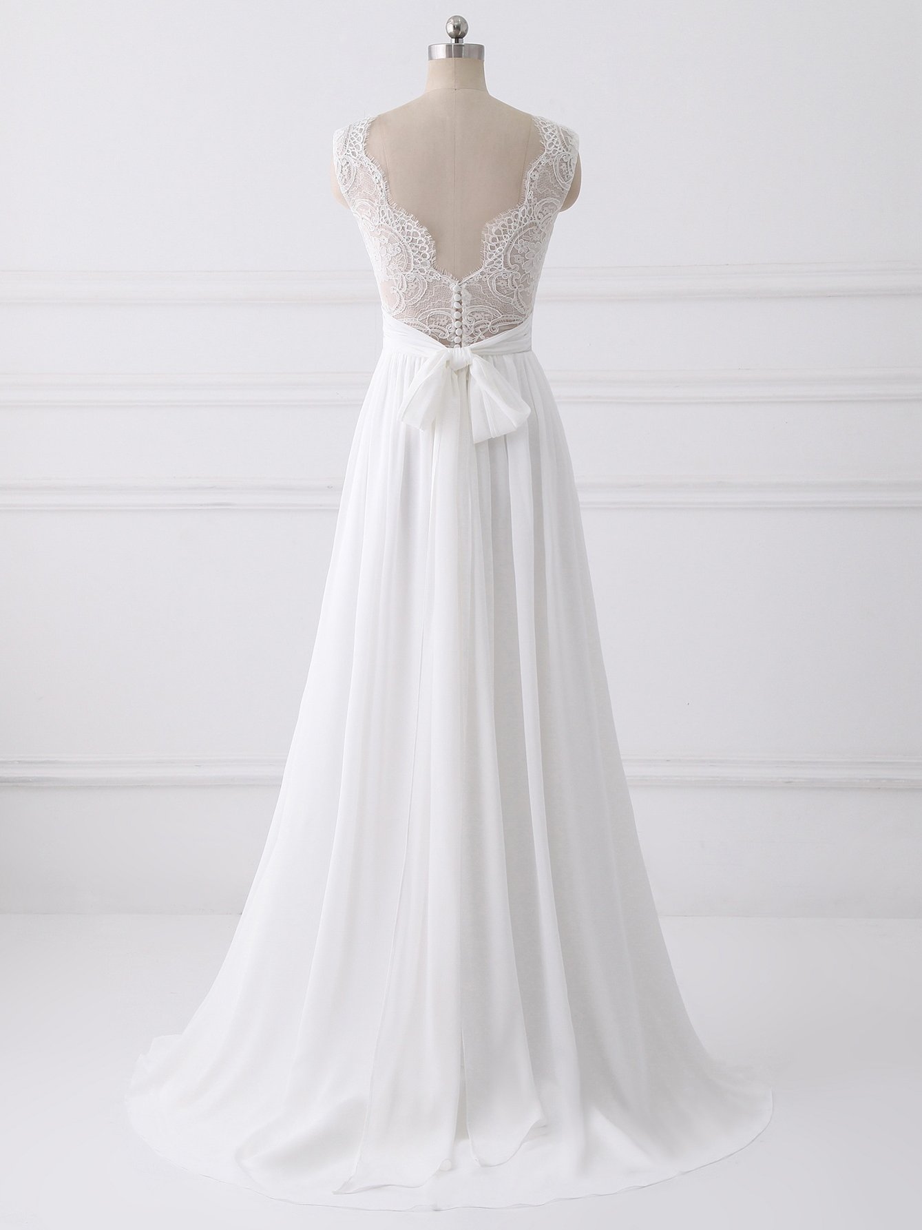 A-line Chiffon and Lace Bridal Gowns with Bow, Simple Wedding Dresses, Beach Wedding Dresses