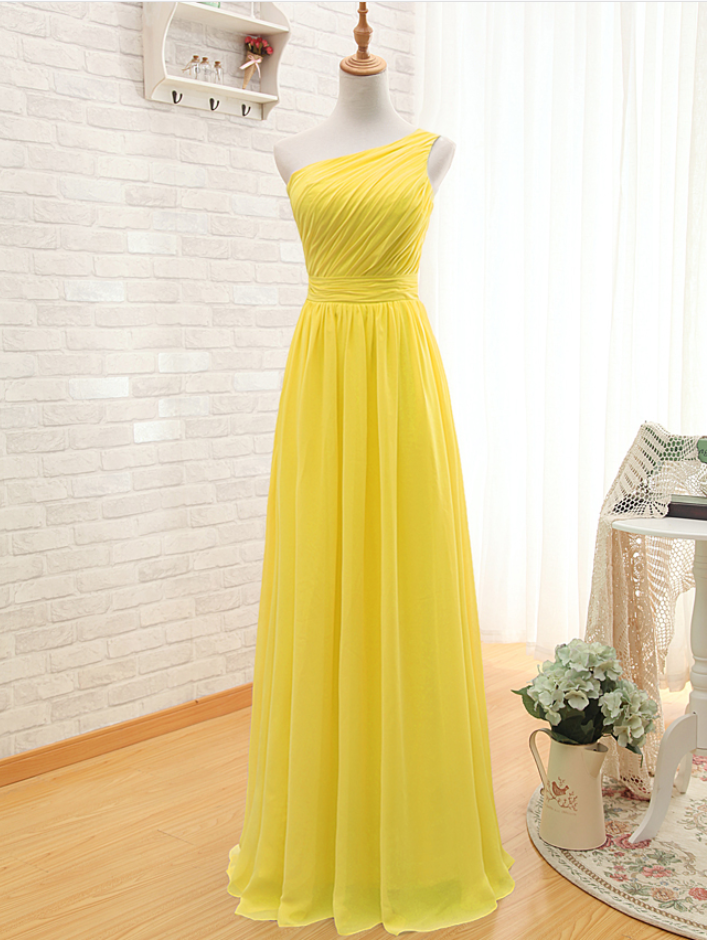 One Shoulder Prom Dress,Yellow Prom dresses,Custom Made Prom Dress, Vintage Prom Dress,Long Prom Dresses, Bridesmaid Dresses Cheap