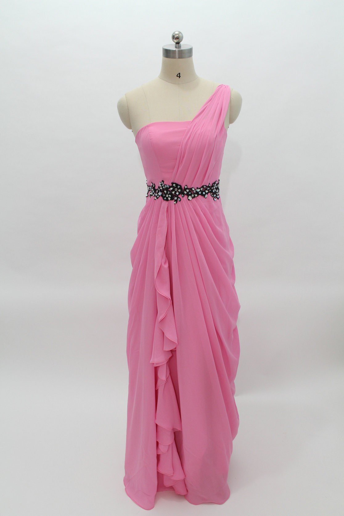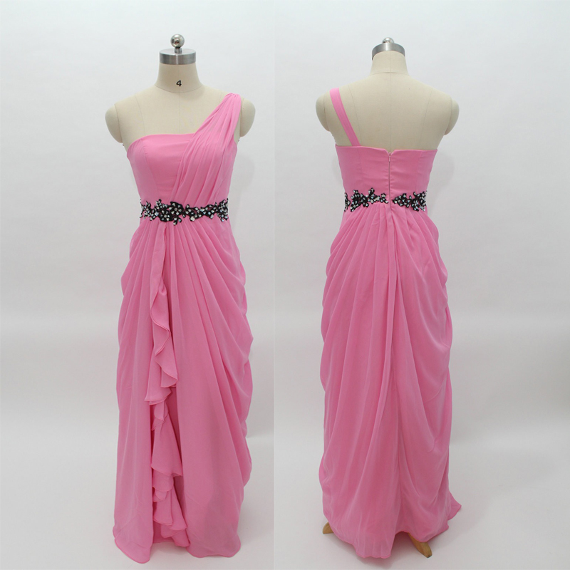 One Shoulder long Chiffon Prom Dresses Crystals Women Party Dresses, Modest Bridesmaid Dresses, Maid of Honor Dresses