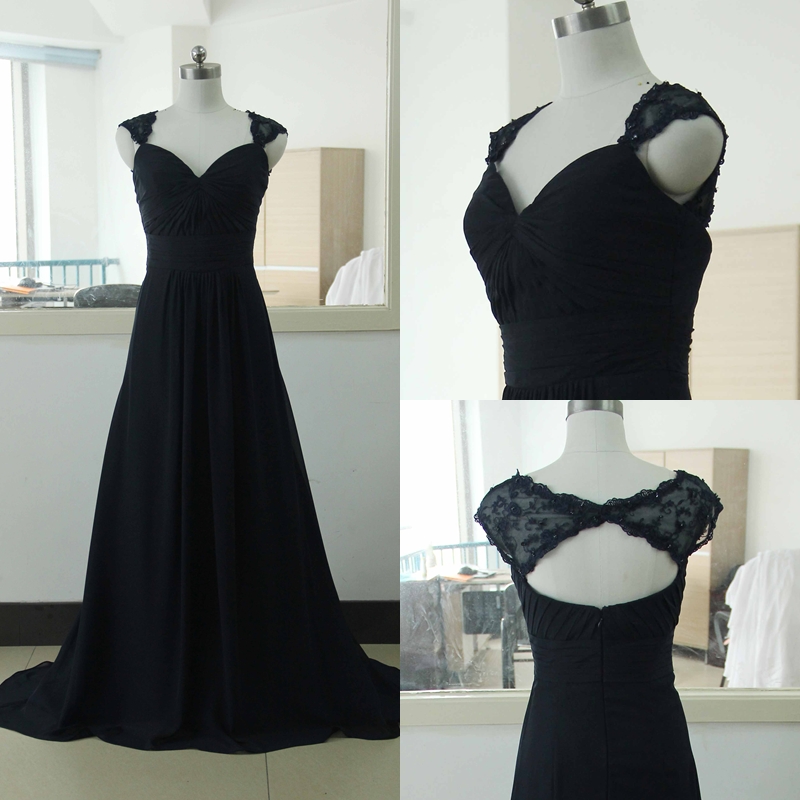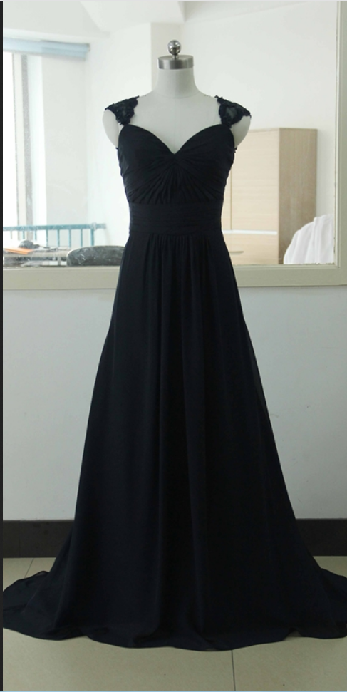 Black Bridesmaid Dresses, Charming Chiffon Long Prom Dress,Pretty Evening Dress,Evening Gown