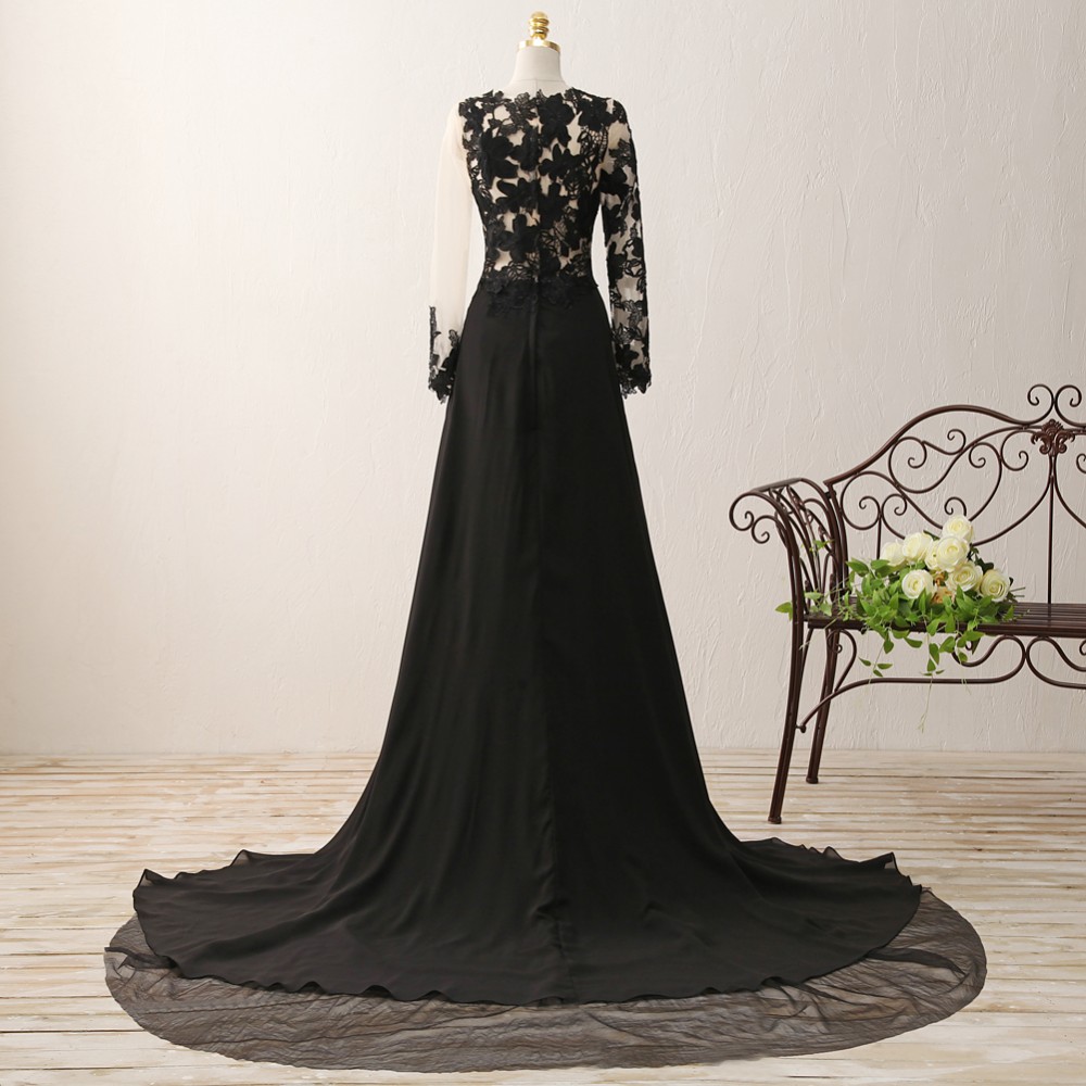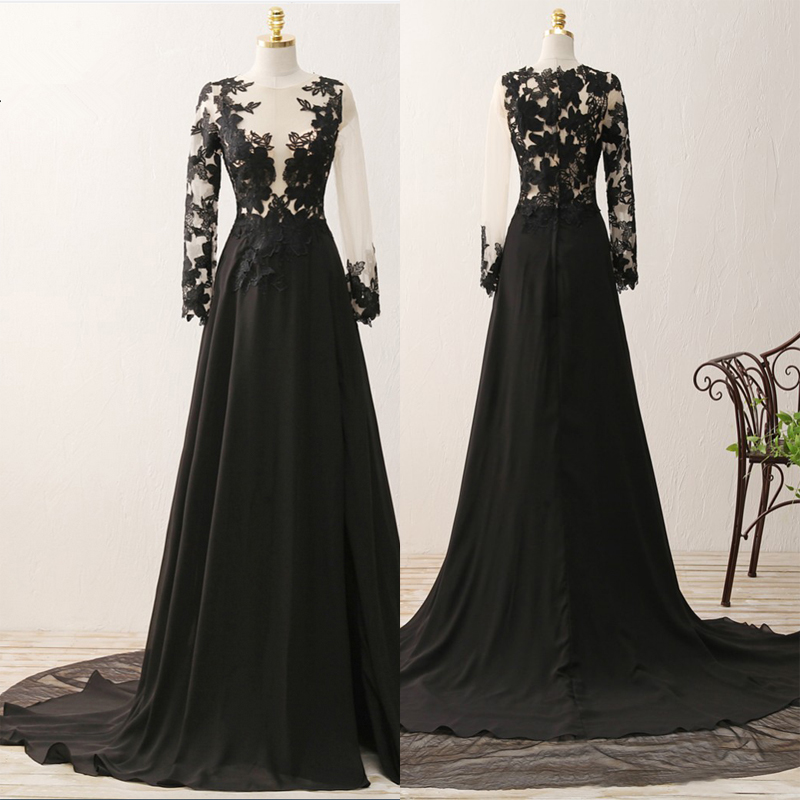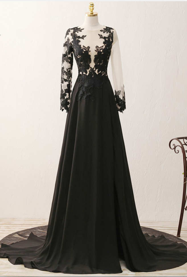 Long Sleeve Prom Dresses, Black Party Dresses, Modest Evening Dresses, Black Formal Dresses