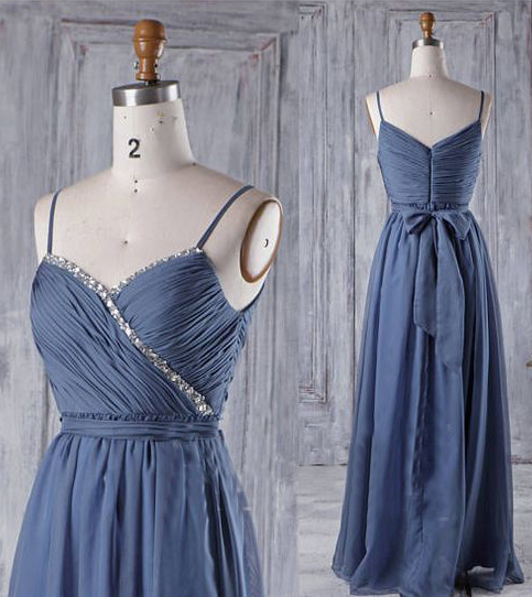 Spaghetti Beaded Long Chiffon Bridesmaid Dresses