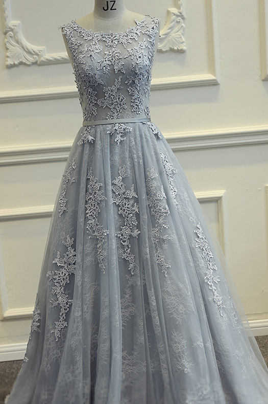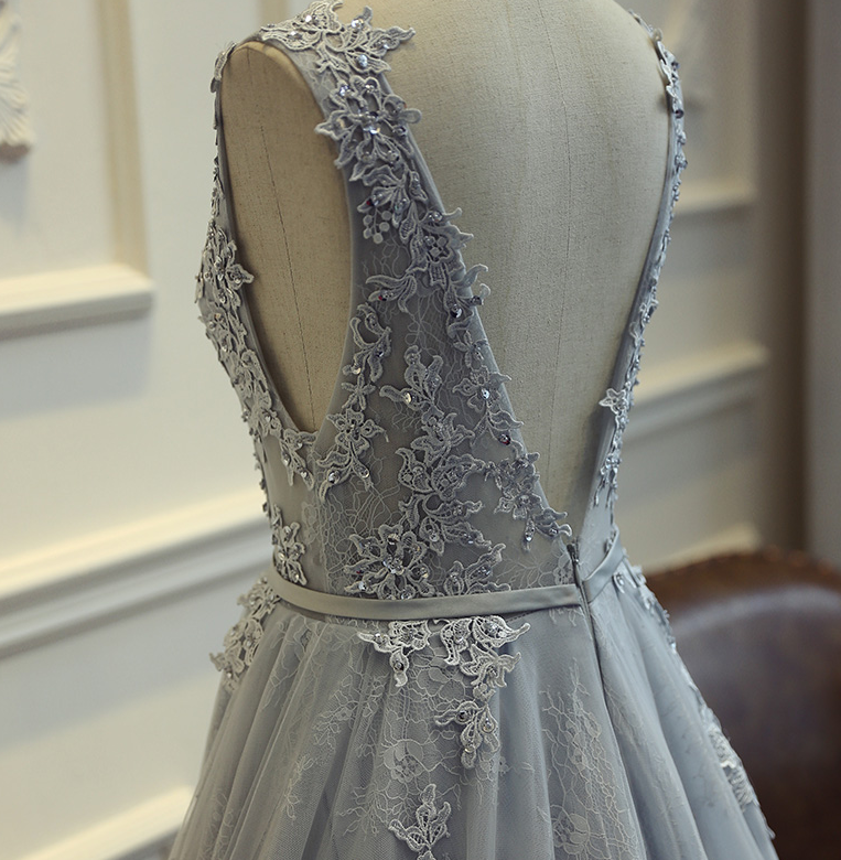 Gray Long Prom Dress,High Quality Prom Dress,Lace Applique Prom Gowns,Charming Evening Dress,Formal Prom Dress