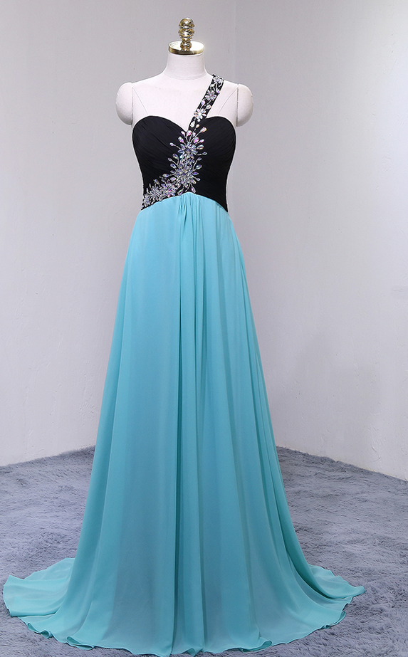 Long Chiffon Prom Dresses Featuring Sweetheart Neckline And One Shoulder