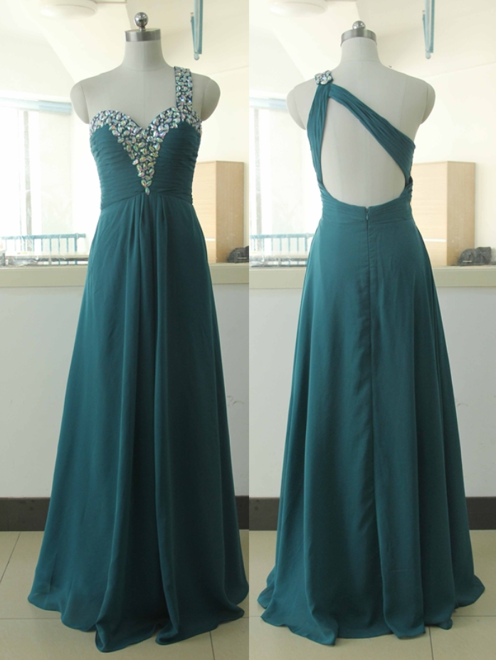 Dark Green Crystal Sequins Chiffon Party Dress Sequins Bridesmaid Prom dress Custom A-line Wedding Party Gown