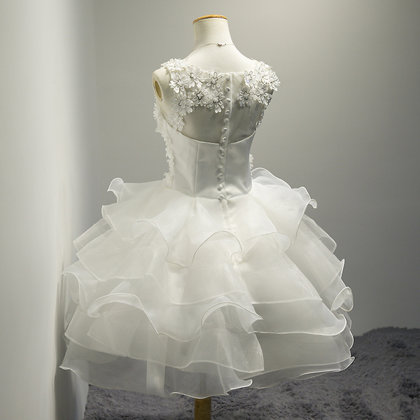 White Organza Layered Short Graduation Dresses, White Lace Prom Dresses, White Homecoming Dresses, Semi Formal Party Dresses