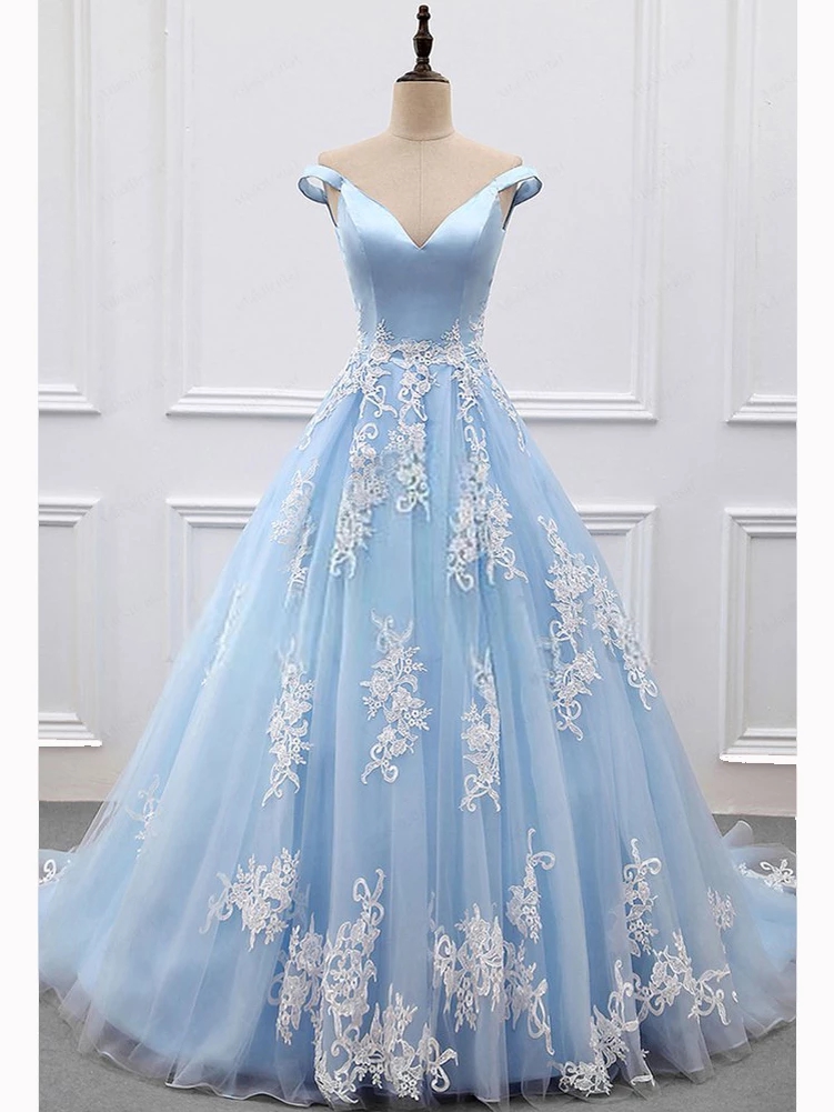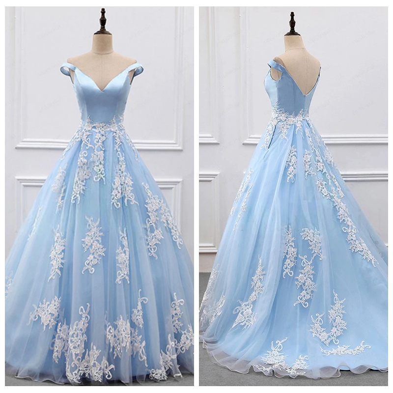 Elegant Off-shoulder Inexpensive Homecoming Dresses A-Line with Sleeves Blue Prom Dresses Lace Appliques Plus Size Formal Dresses