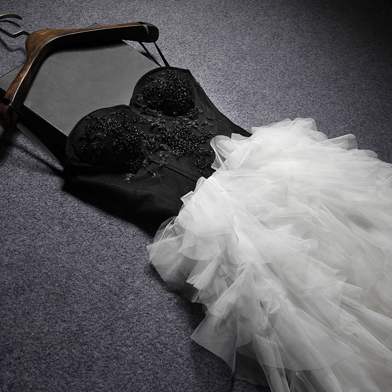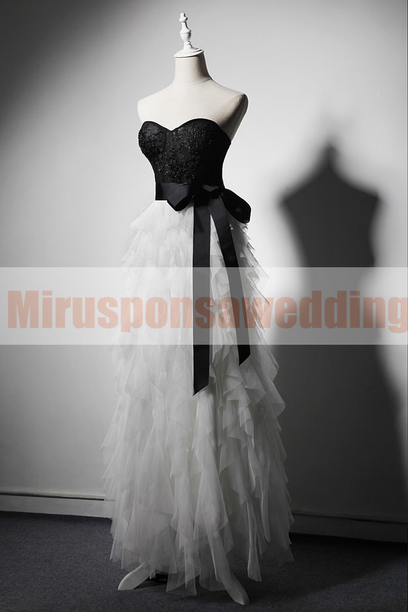 2020 Gorgeous A-Line Black and White Prom Dresses Sweetheart Lace Appliques Unique Homecoming Dresses Pearls Beading Bridal Party Dresses