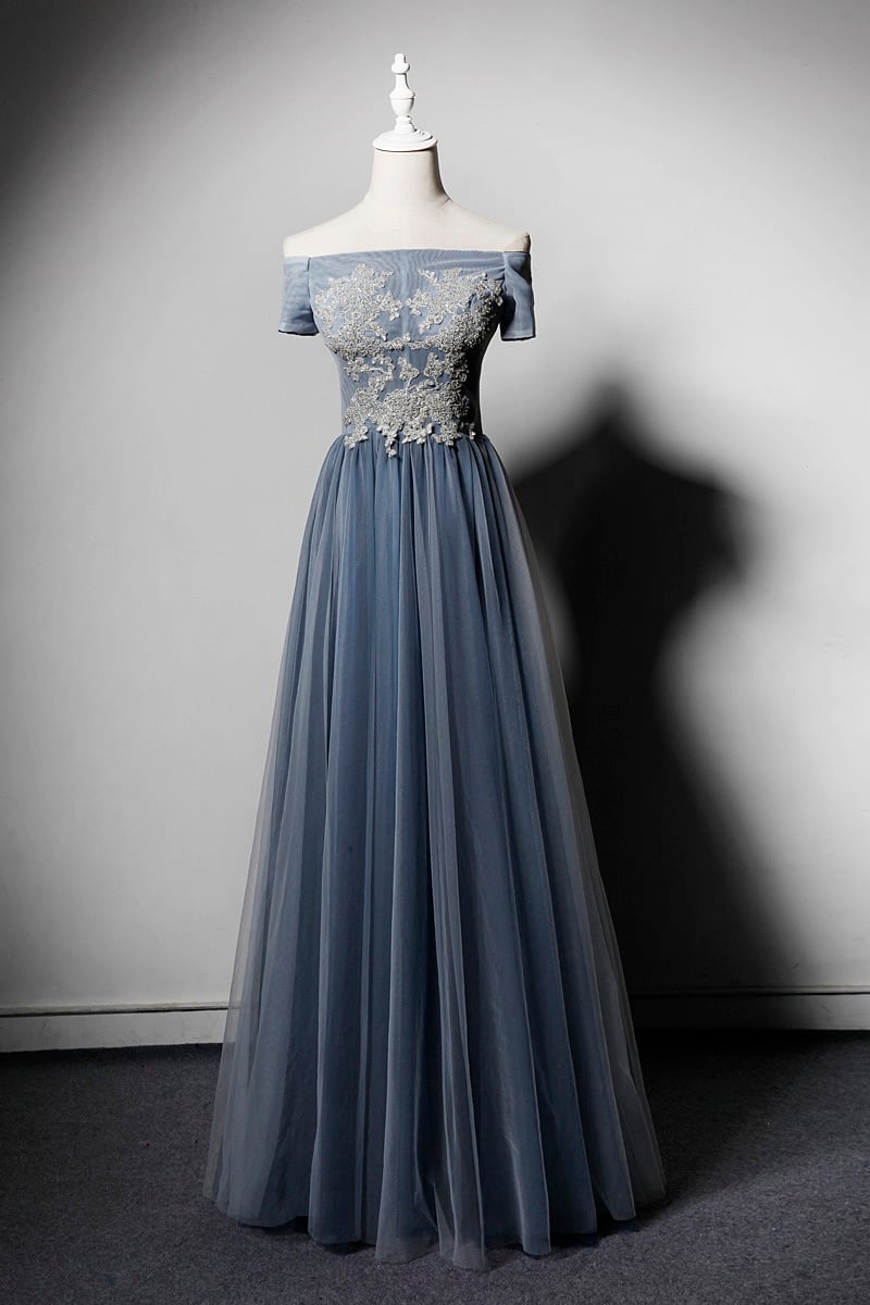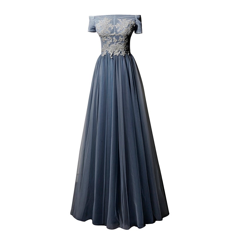 Elegant Bateau Neck Navy Blue Prom Dresses Lace Appliques A Line Evening Gowns Illusion Bodice Ruched Tulle Boho Evening Dresses