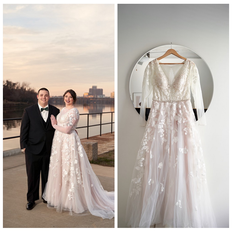 Elegant Long Sleeve Wedding Dresses with Pink Lining Lace Appliques Beautiful Wedding Dresses Beaded Waist Covered Buttons Bridal Gowns