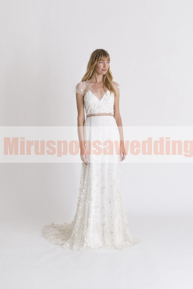Unique White A-Line Non Traditional Wedding Dresses with Sleeves Lace Appliques Backless Wedding Dresses with Court Train Bridal Gowns