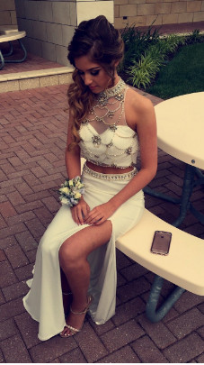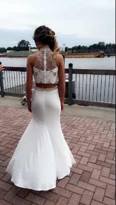 Sexy High Neck Two Piece Prom Dresses Mermaid with High Split Rhinestones Beading Bridal Party Dresses Zipper Up Back White Formal Dresses