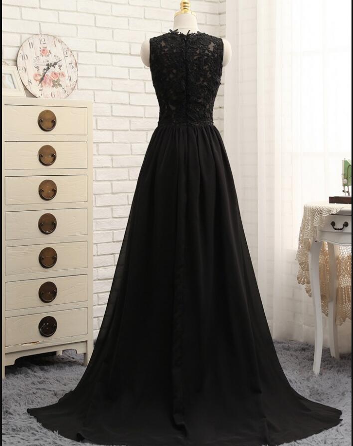 Illusion Bodice Jewel Neck Plus Size Prom Dress Lace Appliques Black Evening Gowns Sleeveless Affordable Evening Dresses with Side Split