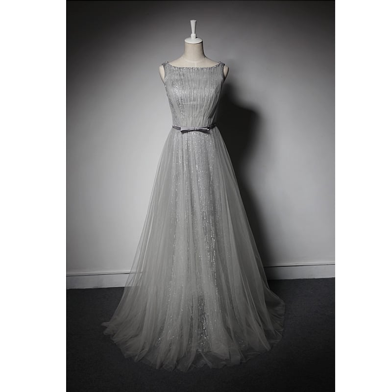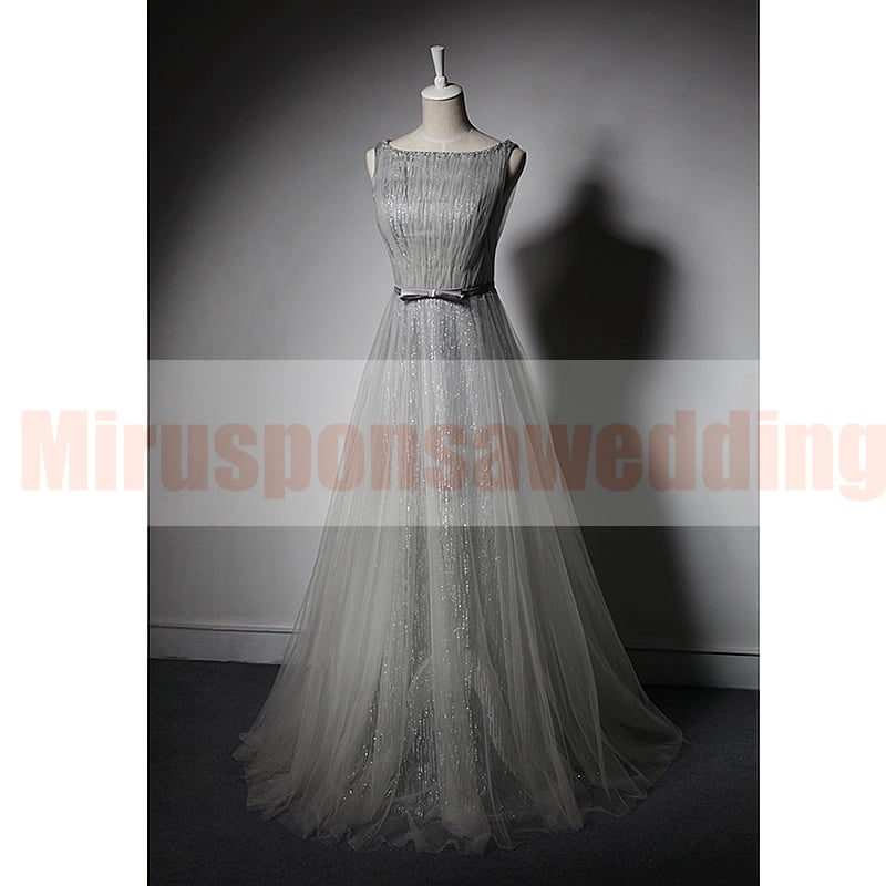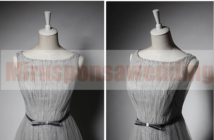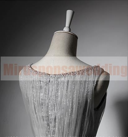 Custom Made Jewel Neck Gray Cocktail Party Dresses Shining Ruched Tulle A Line Prom Dresses Beaded Decoration Sleeveless Evening Gowns with Zipper