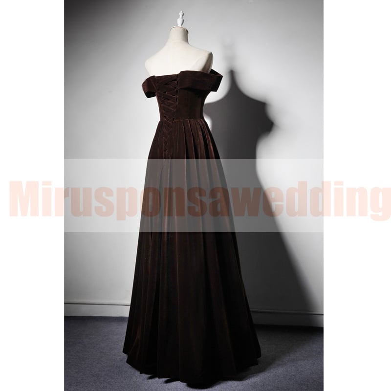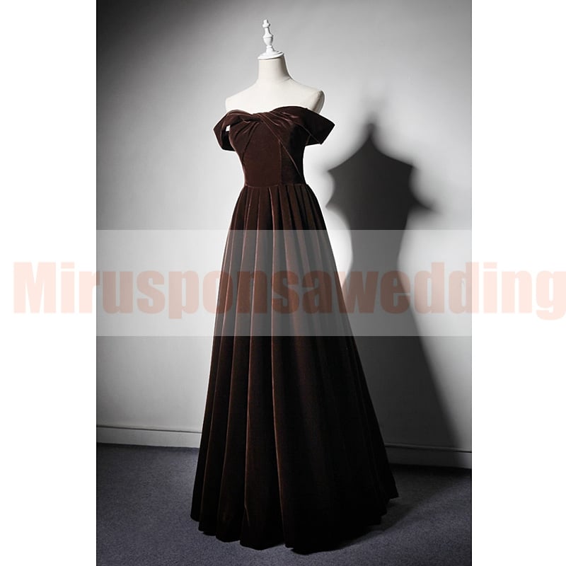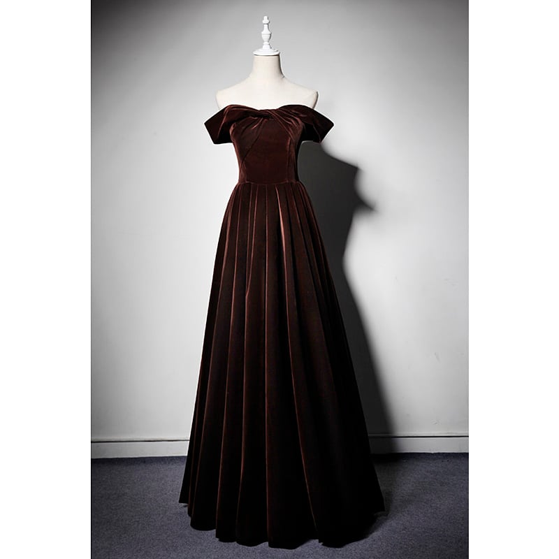 Bateau Neck A Line Velvet Long Prom Dresses Short Capped Sleeve Brown Evening Gowns Ruched Floor Length Vintage Evening Dresses with Lace Up