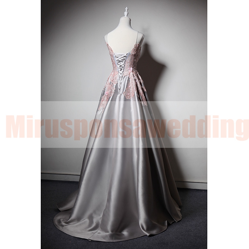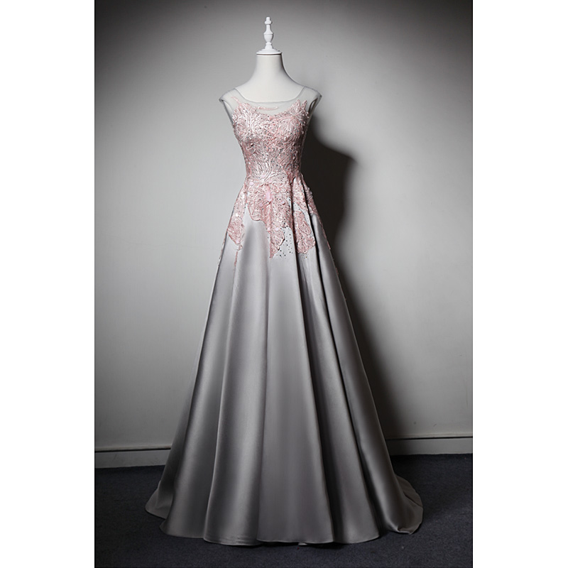 Charming Square Neck Light Gray Evening Gowns Beaded Embroidery Satin Prom Dresses Sleeveless A Line Boho Formal Party Dresses with Low Back