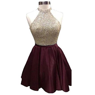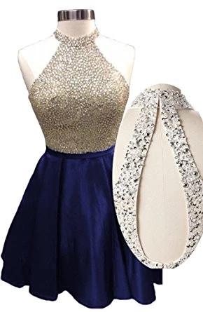 Chic High Neck Sleeveless Dark Purple Prom Dresses Major Beading Short Dresses for Homecoming Open Back A-Line Dresses with Beads