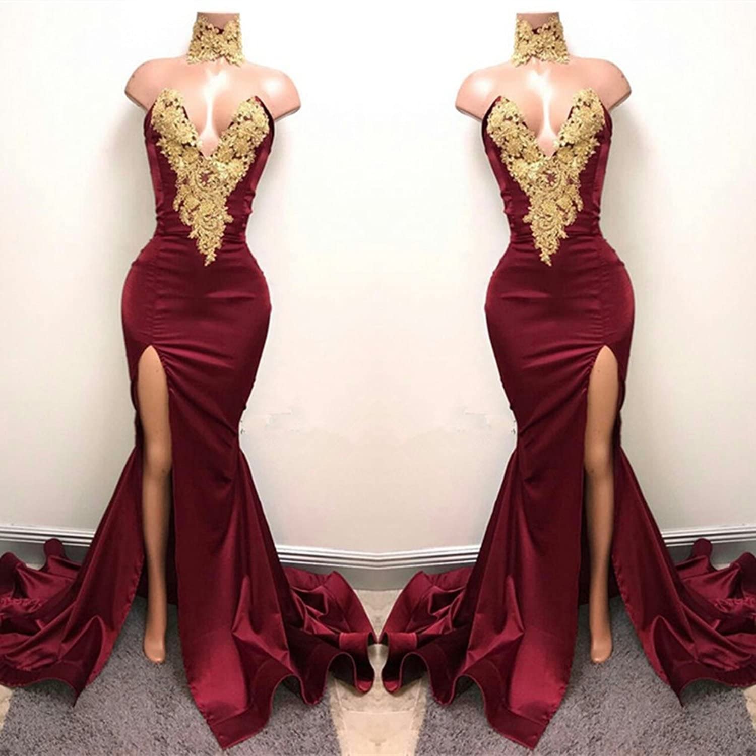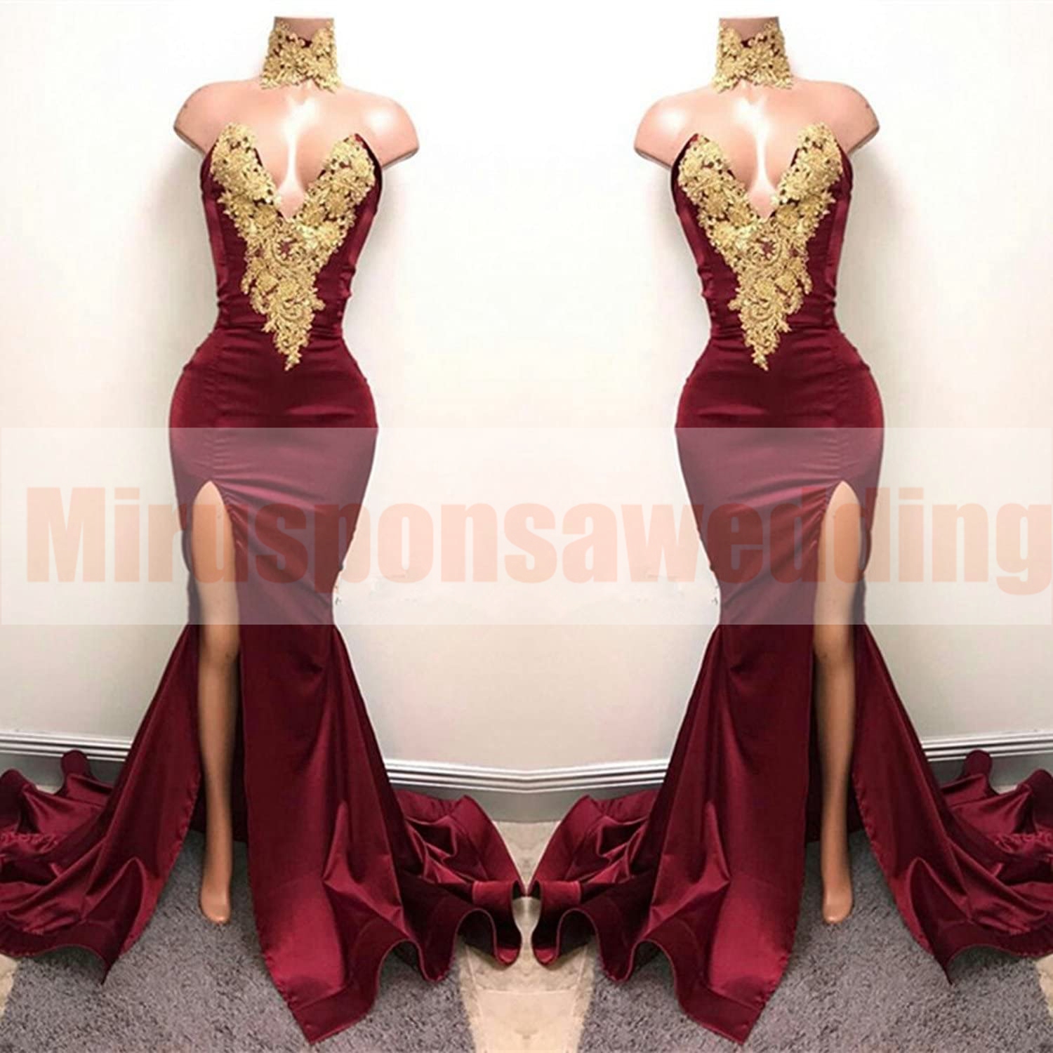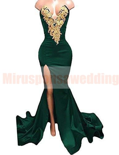 Charming Strapless Mermaid Prom Dress Gold Lace Appliques Sexy Evening Gowns Sleeveless Zipper Up Long Party Dresses with Sweep Train
