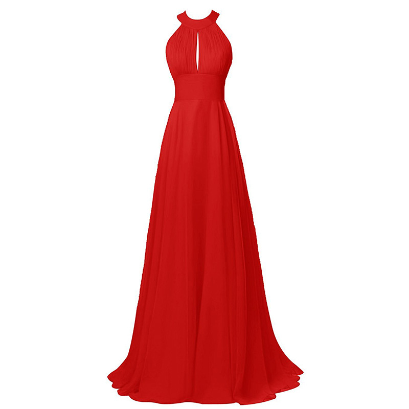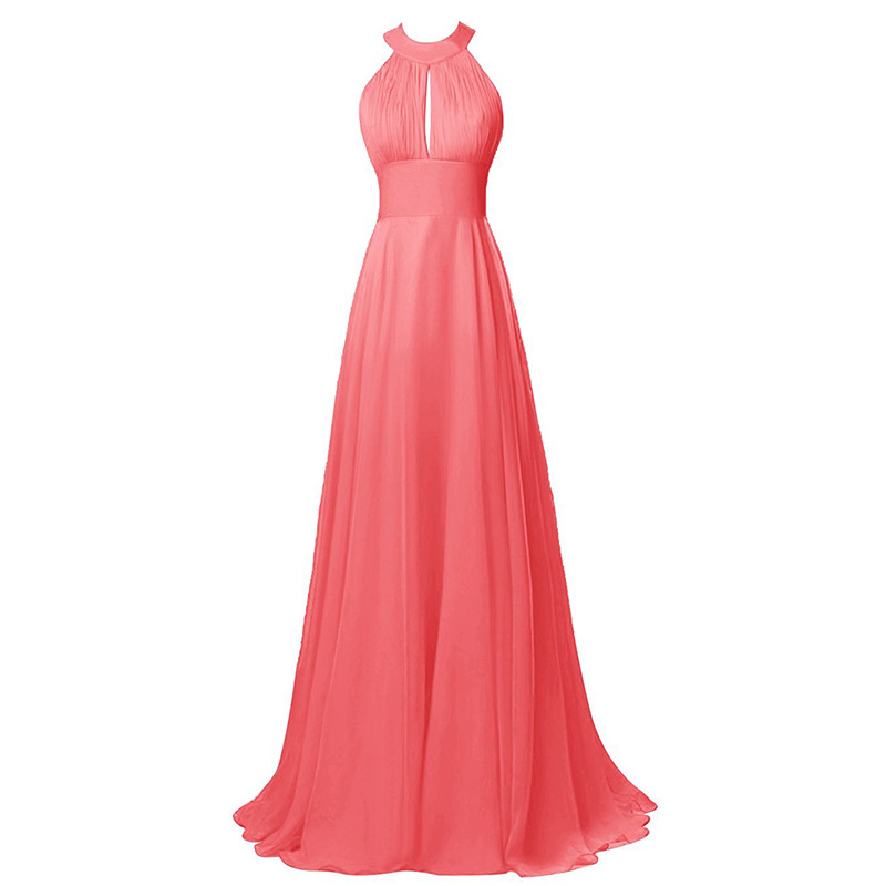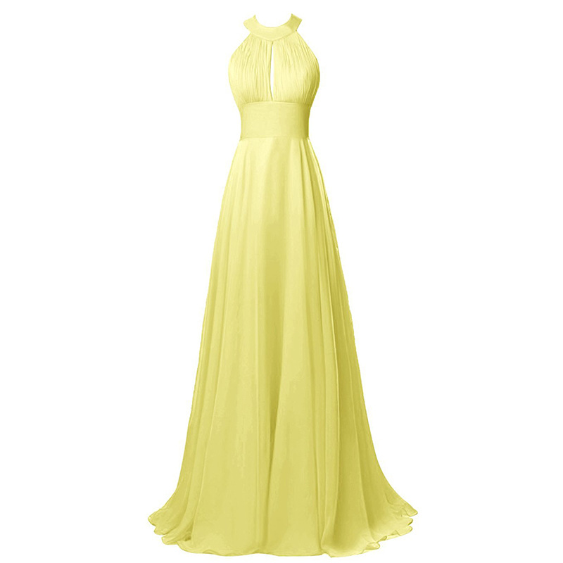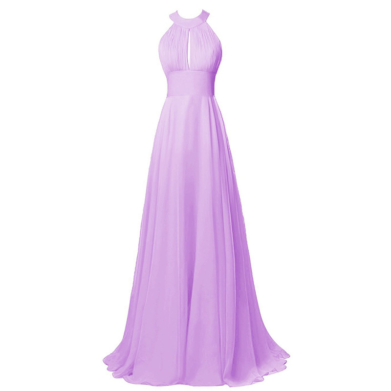 Pretty Halter Neck Purple Bridesmaid Dresses Sleeveless Ruffle Chiffon Bridesmaid Dresses A Line Long Maid of Honor Dresses with Hollow Back