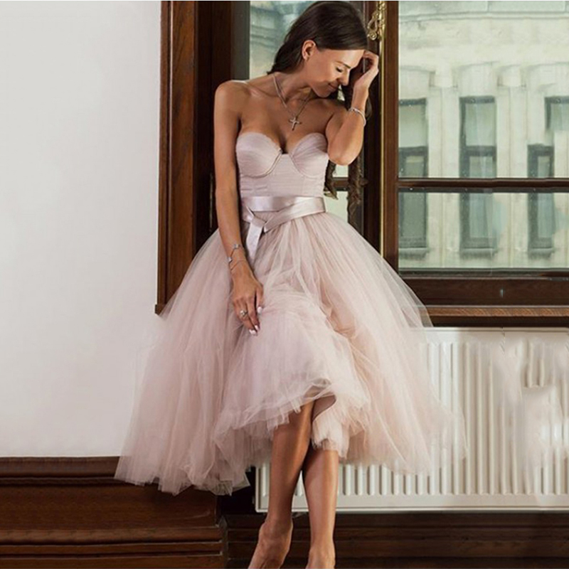 Blush Pink Casual Wedding Dresses Sweetheart A-Line Tea Length Informal Wedding Gowns Sash Bodice vestidos elegantes