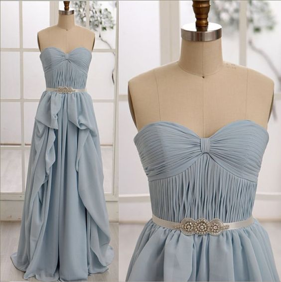 Gray Blue Chiffon Evening Dresses, Long Party Dresses,Prom Dresses with Ruffled Skirt