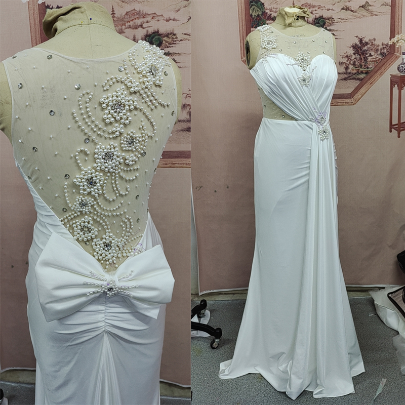 White Wedding Dresses, Mermaid Wedding Gowns, White Beaded Bridal Dresses