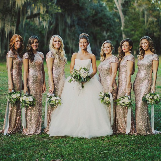 Glittery Long Bridesmaid Dress Modest Gold Rose Sequins Mermaid Sheath Bridesmaid Gown Prom Dresses