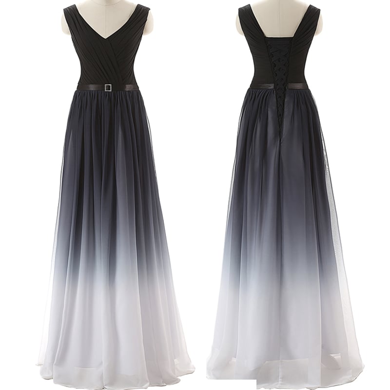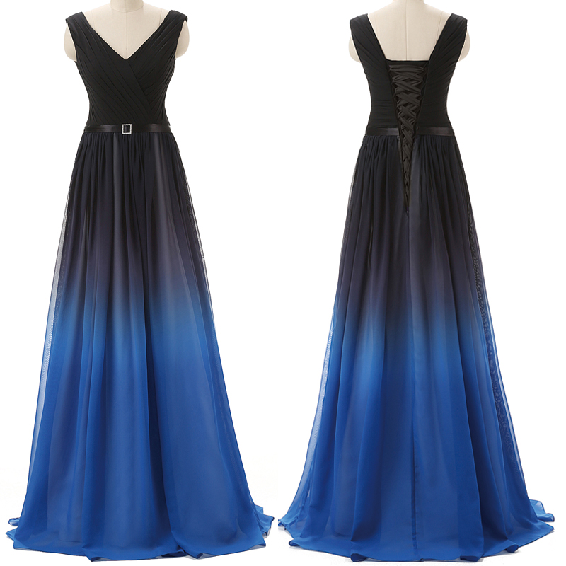 Formal Women Dress, Black Navy Blue Ombre Prom Dresses With V Neck Long Evening Dress, Sleeveless Gradient Bridesmaid Dresses