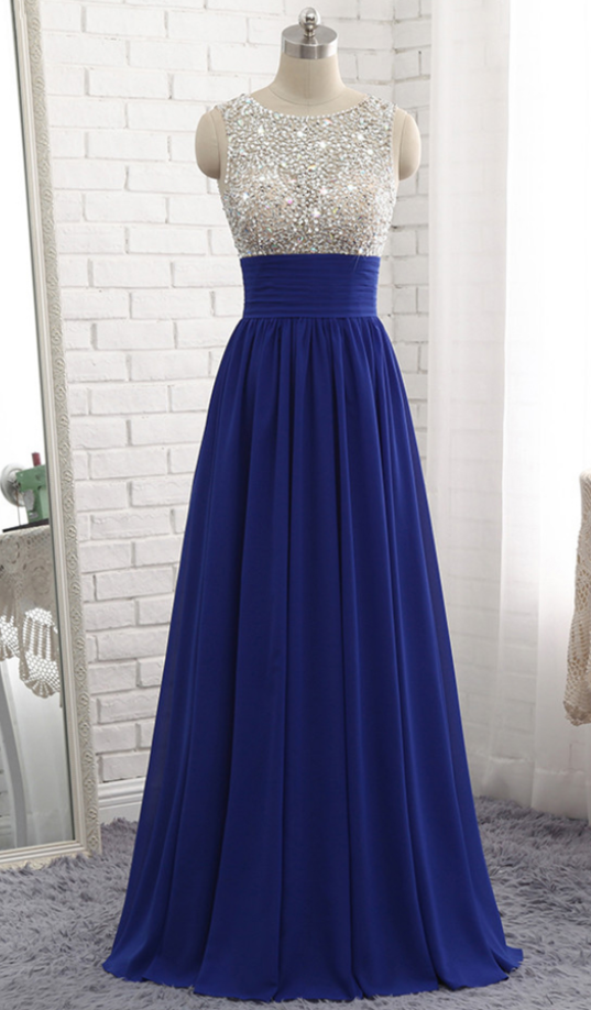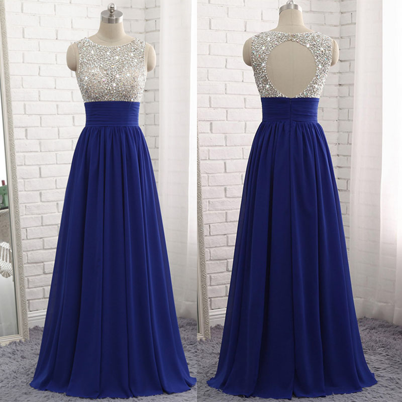 Royal Blue Chiffon Sequined Long A Line Prom Dress, Bridesmaid Dress