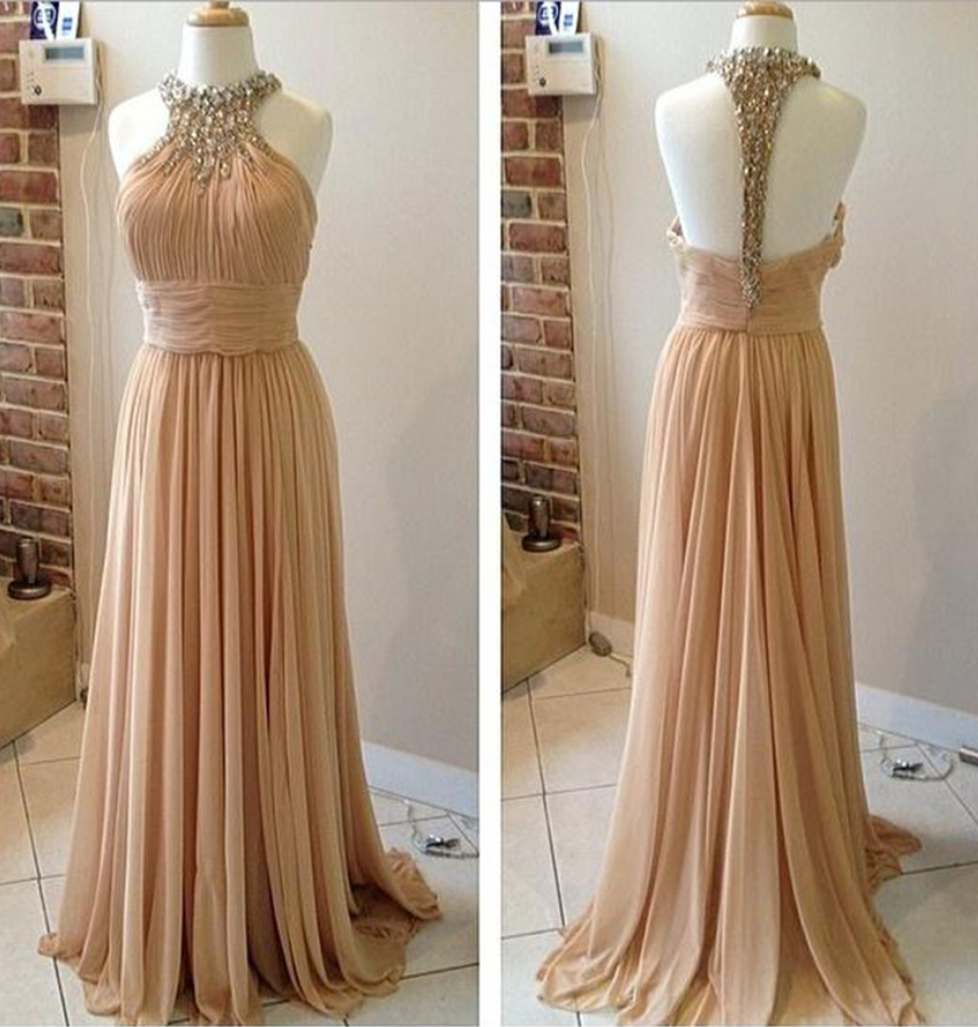 Sexy Evening Dresses, Halter Beaded Ruched A-line Long Prom Dress, Evening Dress, Wedding Party Dress