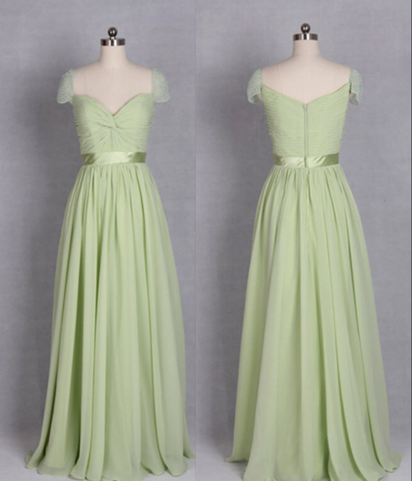 Sexy Sage Green Chiffon Bridesmaid Dress,Floor Length A Line Zipper Cap Sleeve Bridesmaid Dresses,Sexy Long Cheap Prom Dresses Party Evening Gown