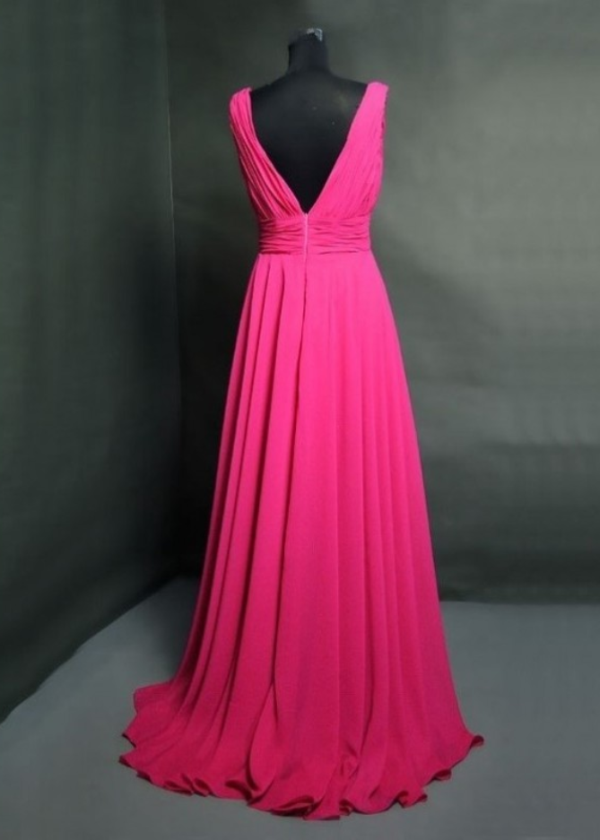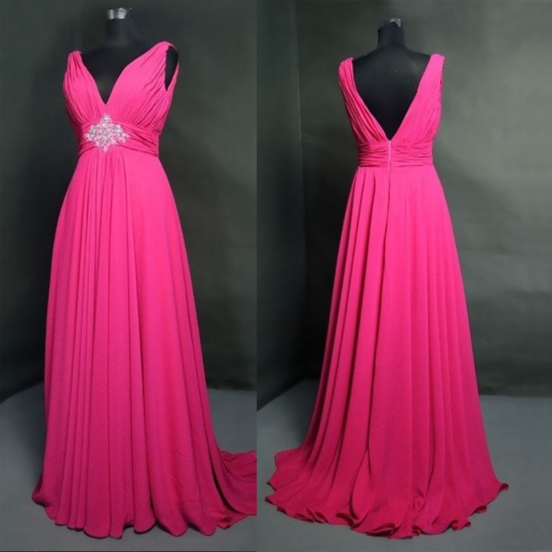Fuchsia Prom Dress,V Neck Prom Dress,Sexy Evening Gowns,Party Dress,Chiffon Prom Dress,Long Prom Dresses,Chiffon Bridesmaid Dresses
