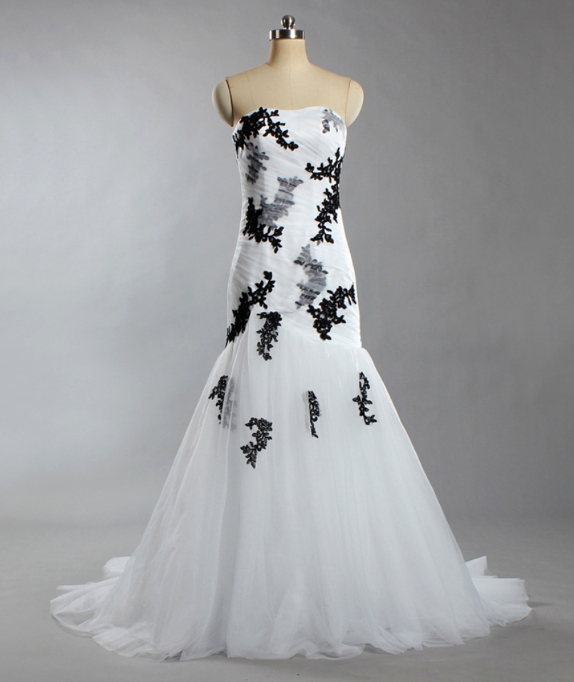 Black and White Wedding Dresses, Mermaid Wedding Dresses, Colored Bridal Gowns, Black and White Bridal Dress