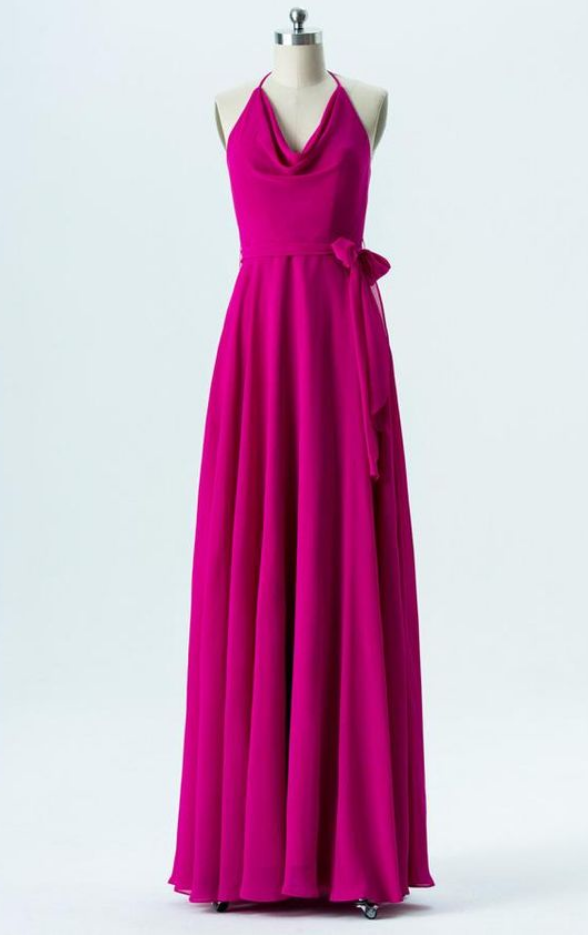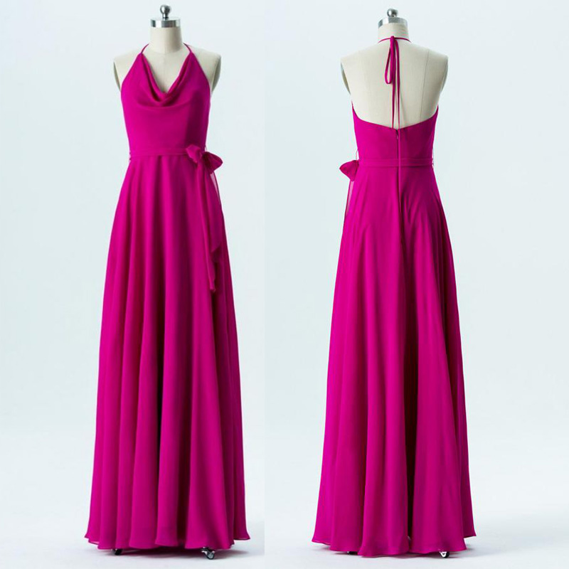 A Line Floor Length Halter Sleeveless Open Back Cheap Bridesmaid Dresses, Casual Bridesmaid Dresses, Cheap Bridesmaid Dresses