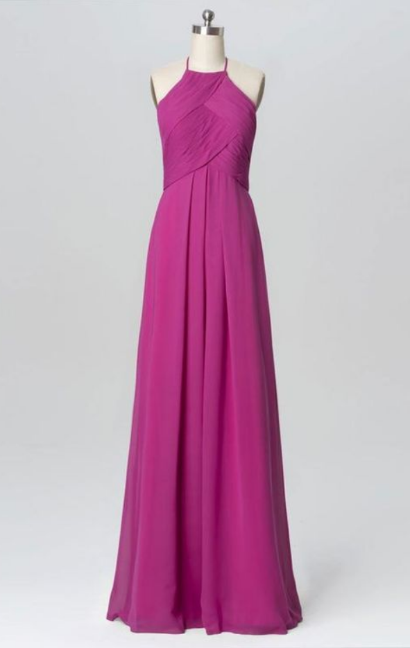 Fabulous Chiffon Halter Neckline Floor-length A-line Bridesmaid Dress, Fuchsia Bridesmaid Dresses, Wedding Party Dress, Cheap Bridesmaid Dresses