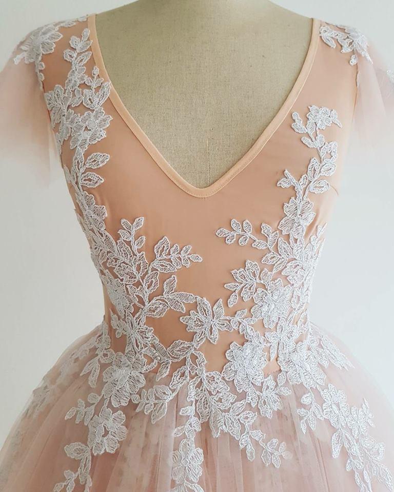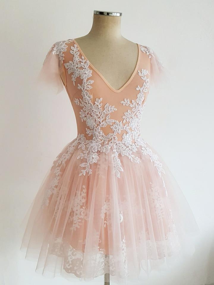 Tulle V-neck prom dresses Short A-line Homecoming Dresses With Lace Appliques