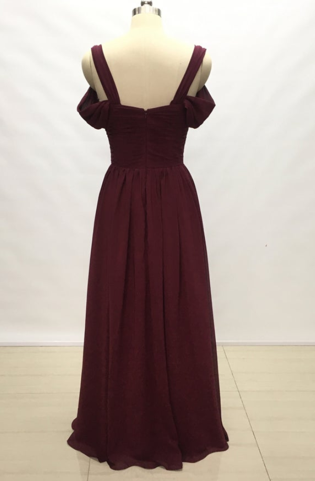 Burgundy Chiffon Long Bridesmaid Dress,Burgundy Bridesmaid Dresses,Boho Bridesmaid Dresses,Beach Maid of Honor Dress