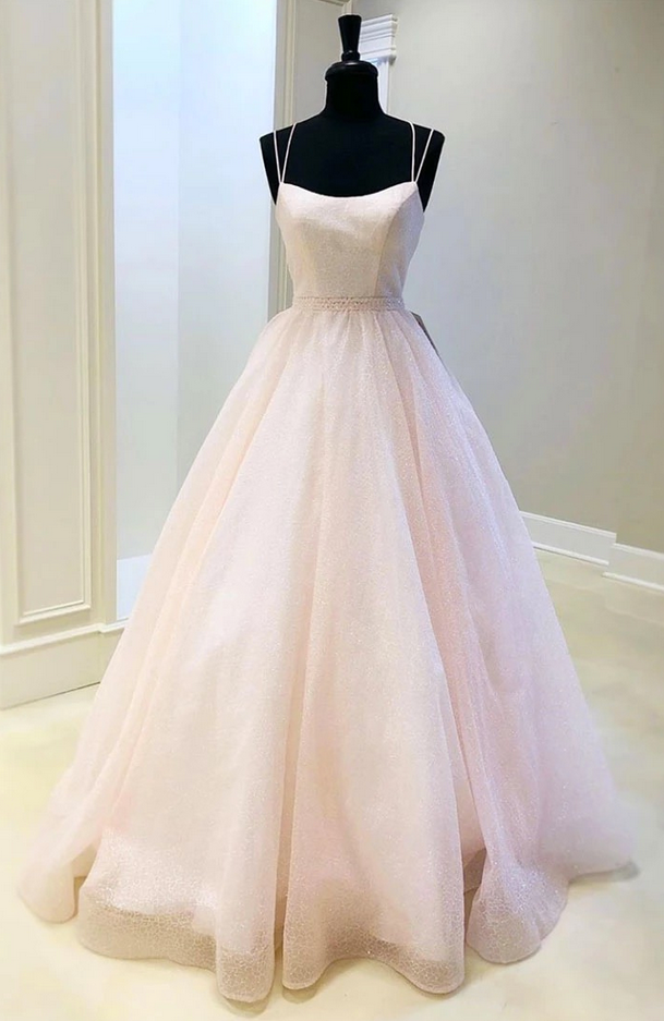 New Arrival Pink Tulle A Line Long Senior Prom Dress, Evening Dress, Pale Pink Homecoming Dress