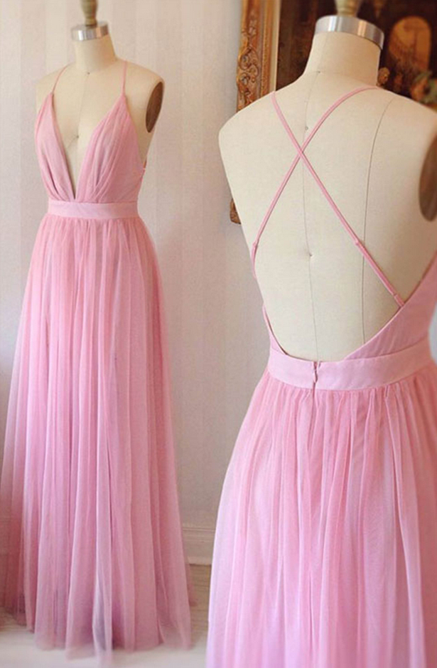 Pink Chiffon Bridesmaid Dress, Pink Bridesmaid Dresses, Sexy Evening Dress