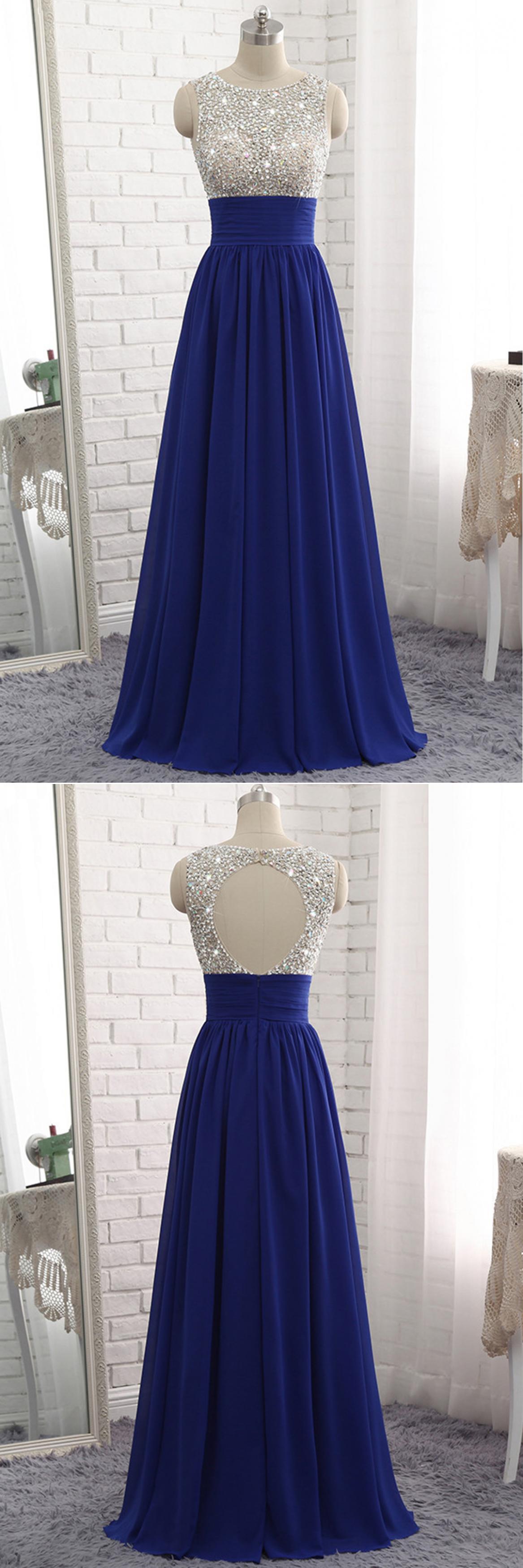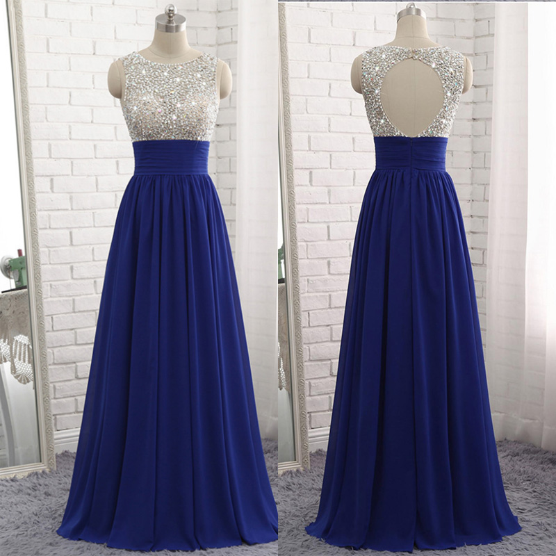 Royal Blue Chiffon Sequined Long A Line Prom Dress, Bridesmaid Dress, Beaded Bridesmaid Dress