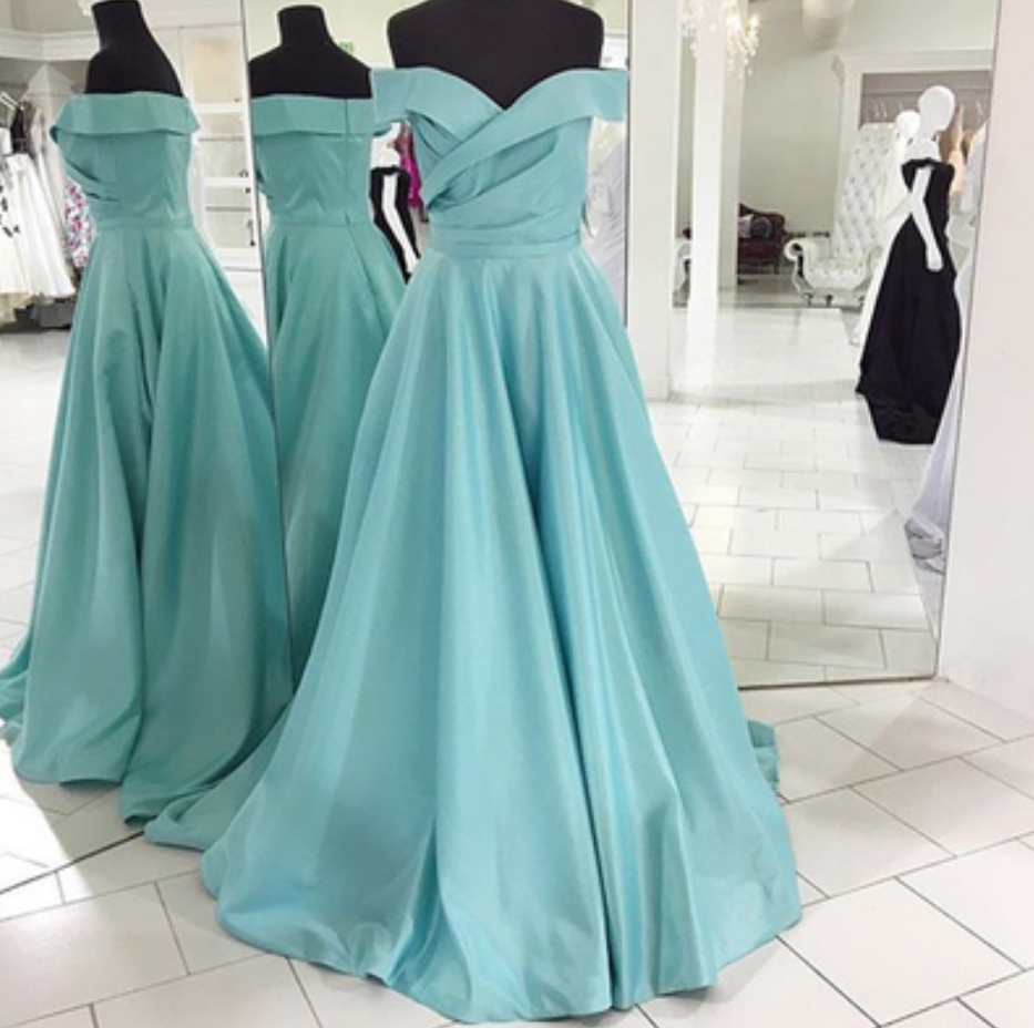 Simple Off Shoulder Long Satin Prom Dresses, Blue Prom Dress