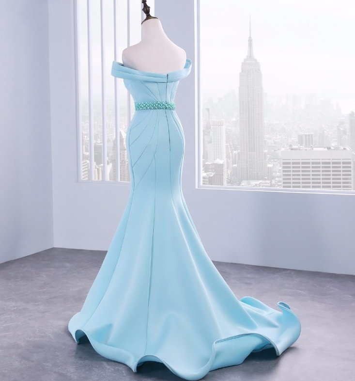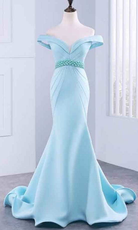 Sexy Mermaid Long Prom Dress, Beading Luxury Evening Dress, Satin Prom Dresses, Red Carpet Dresses, Light Blue Prom Dresses