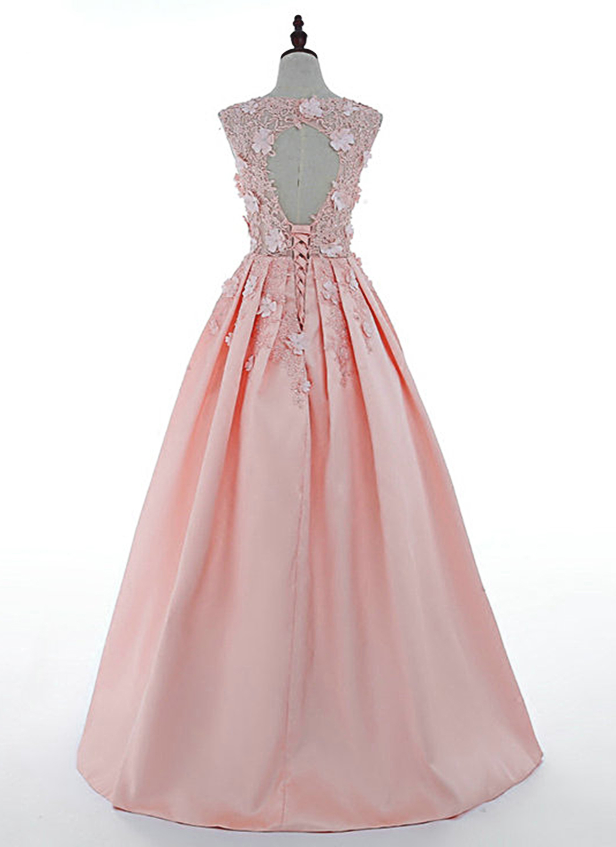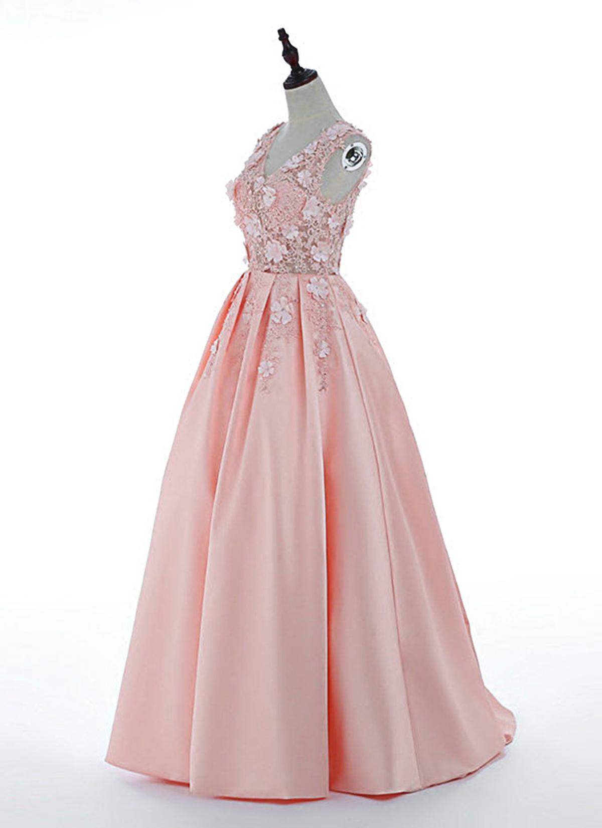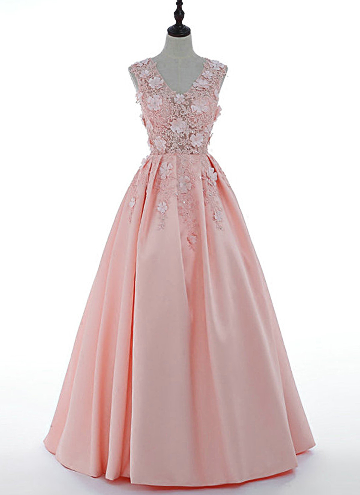 Fresh Pink Satin V Neck 3D Lace Applique Long Senior Prom Dress, Satin Evening Dresses