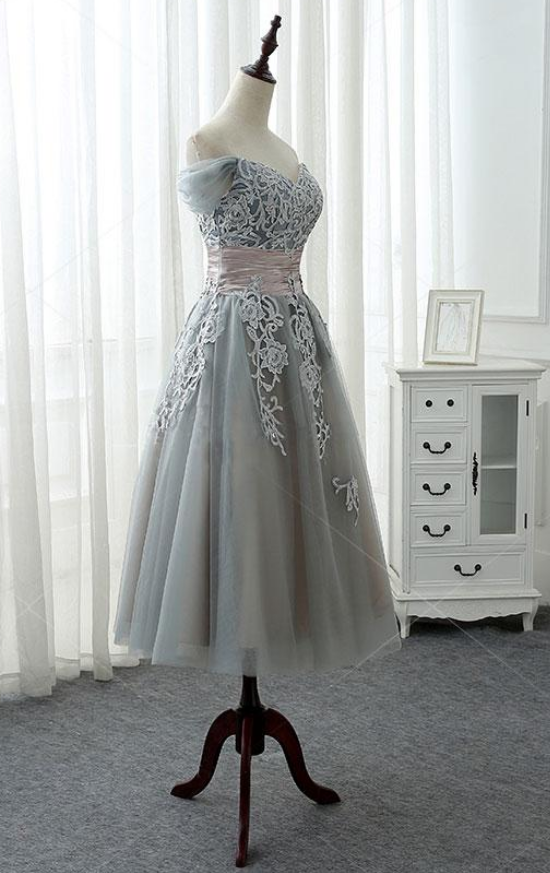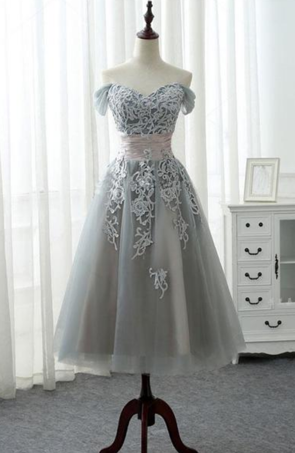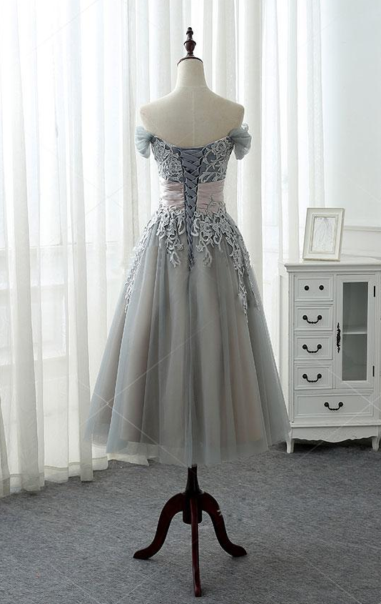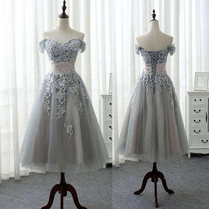 Tea Length Off the Shoulder Party Dresses, Corset Semi Formal Party Dress, Tea Length Prom Dresses, Formal Party Dresses