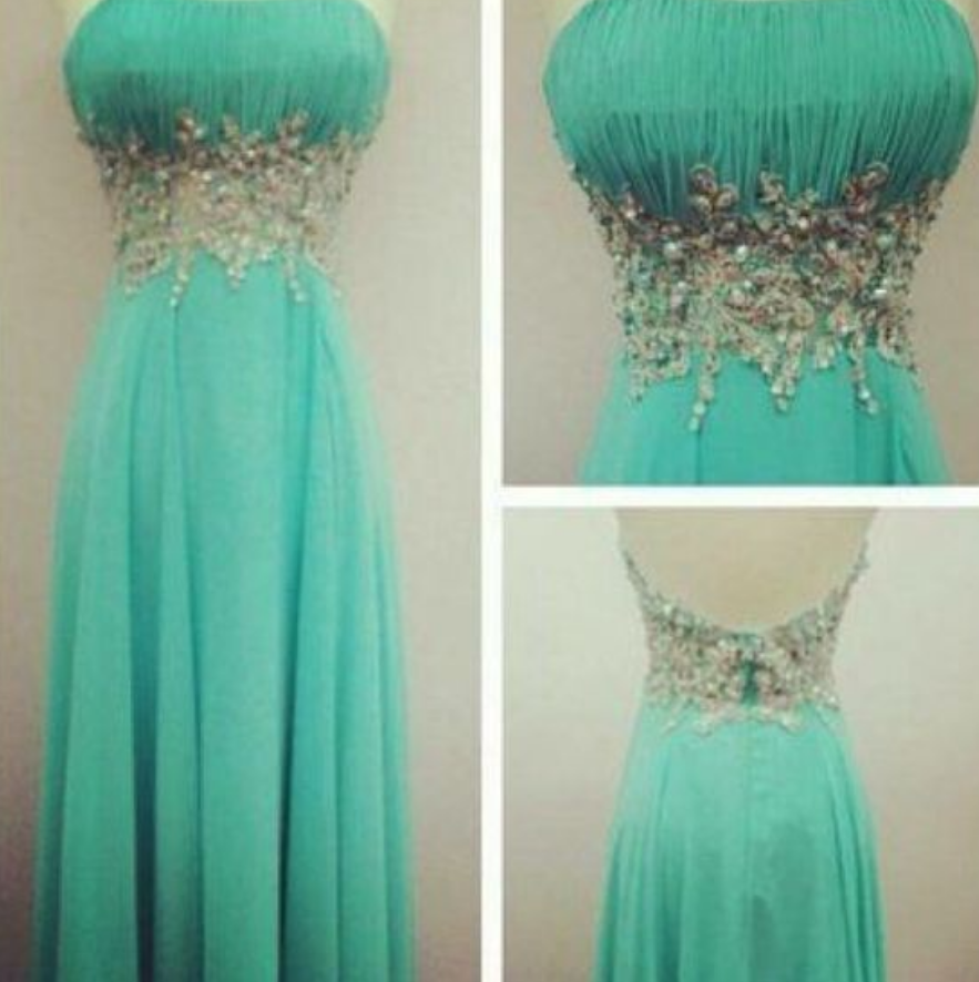 Charming Prom Dress,Strapless Prom Dress,Chiffon Prom Dress,Beading Dress,A-Line Evening Dress,Tiffany Blue Bridesmaid Dresses, Wedding Guest Dress