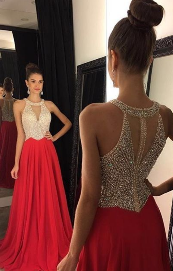 High Quality Prom Dress,Chiffon Prom Dress,Beading Prom Dress,O-Neck Prom Dress, Charming Prom Dress