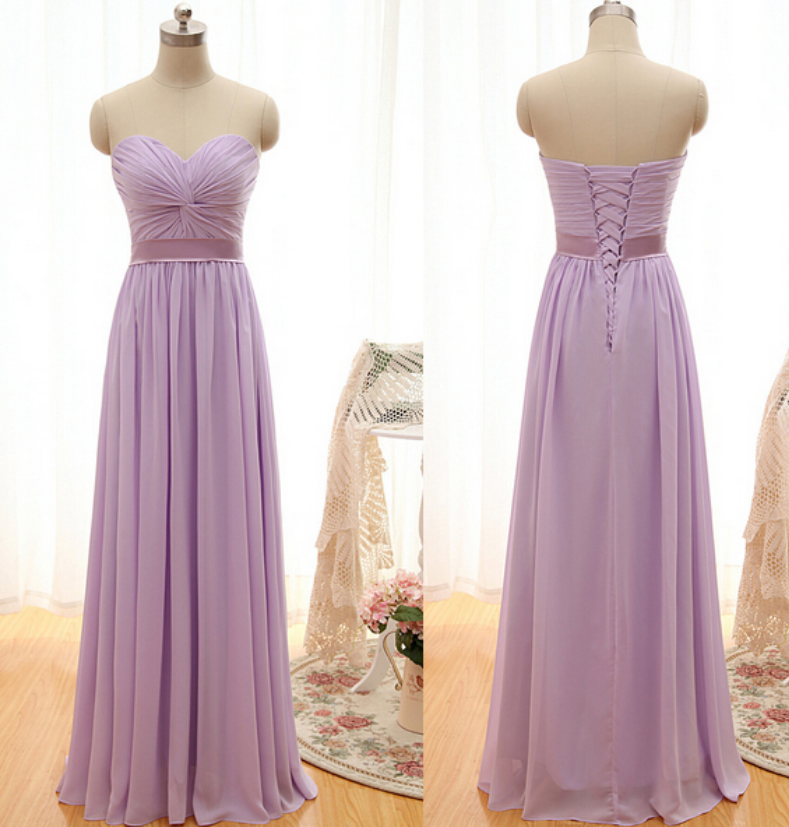 Chiffon Ruched Sweetheart Floor Length A-Line Bridesmaid Dress Featuring Lace-Up Back, Prom Dress, Formal Dress, Purple Bridesmaid Dress